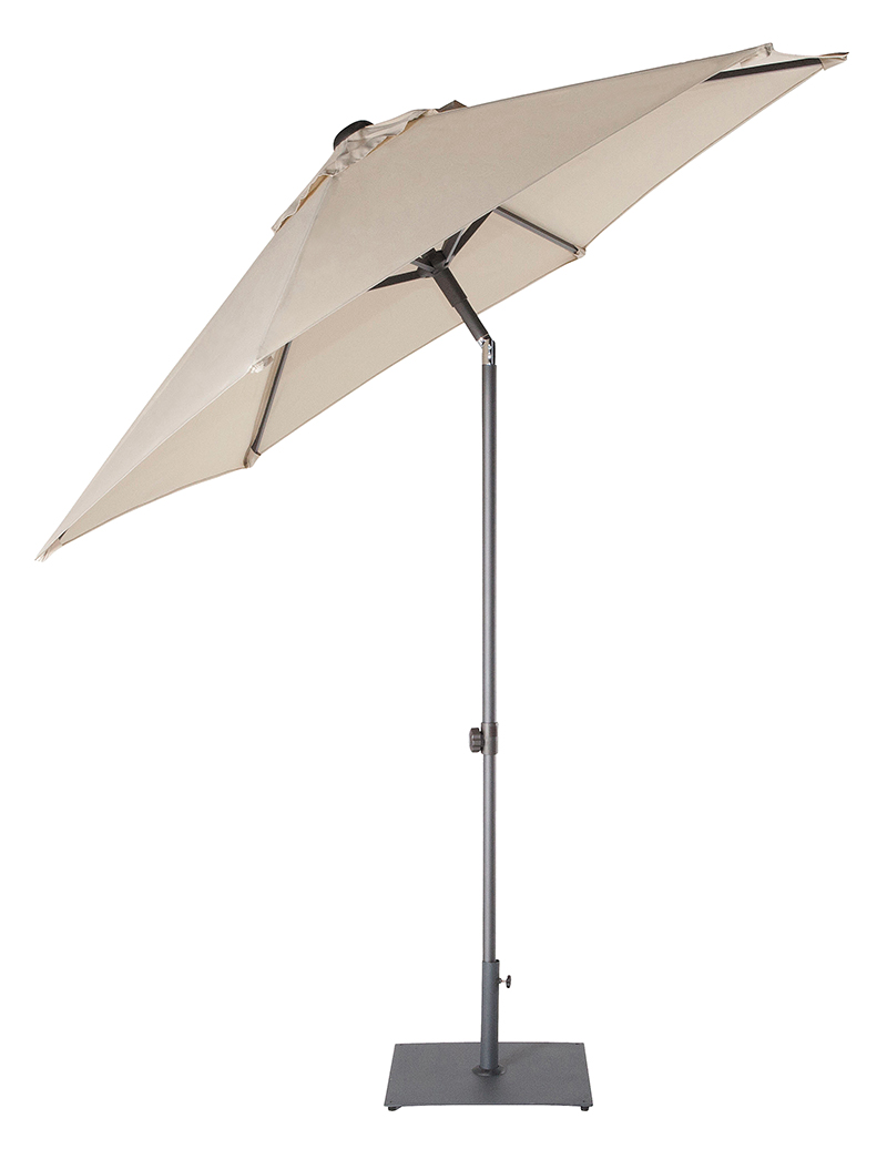 A convenient, compact and adaptable small aluminium umbrella. Infinitely height adjustable. Push-up opening. Available in choice of five Polyester canopies with a Charcoal frame.