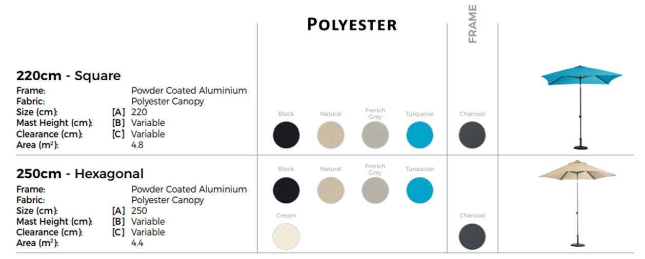 A convenient, compact and adaptable small aluminium umbrella. Infinitely height adjustable. Push-up opening. Available in choice of five polyester canopies with a charcoal frame.