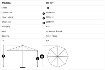 A soft, coastal feel with effortless charm. Shelta’s Majorca Scallop Umbrella in natural and black trim sets the scene for relaxed summer living, shade you can count on, style you’ll love.