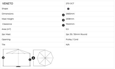The Veneto is part of our Market umbrellas, manufactured in high quality hardwood. The Courtyard range features a pulley / cord opening and silver trim components to give a superb finish touch.